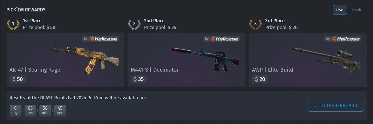 Præmier for Pick’Ems på BLAST Rivals Fall 2025: