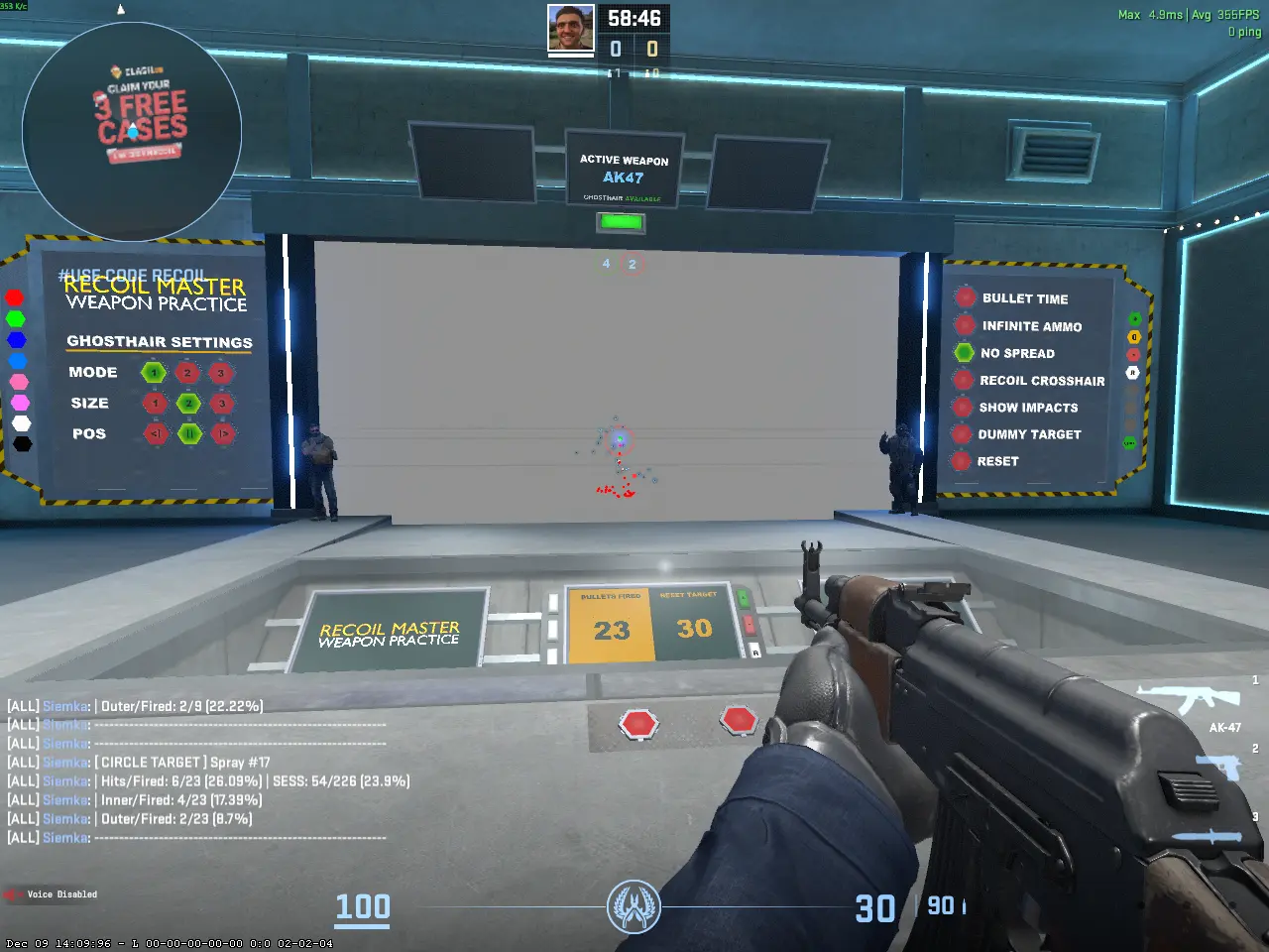 Meilleurs paramètres : Activez "Show Bullet Impacts", utilisez "Ghosthair" pour voir le chemin parfait du spray, commencez avec l'AK-47 et le M4A4