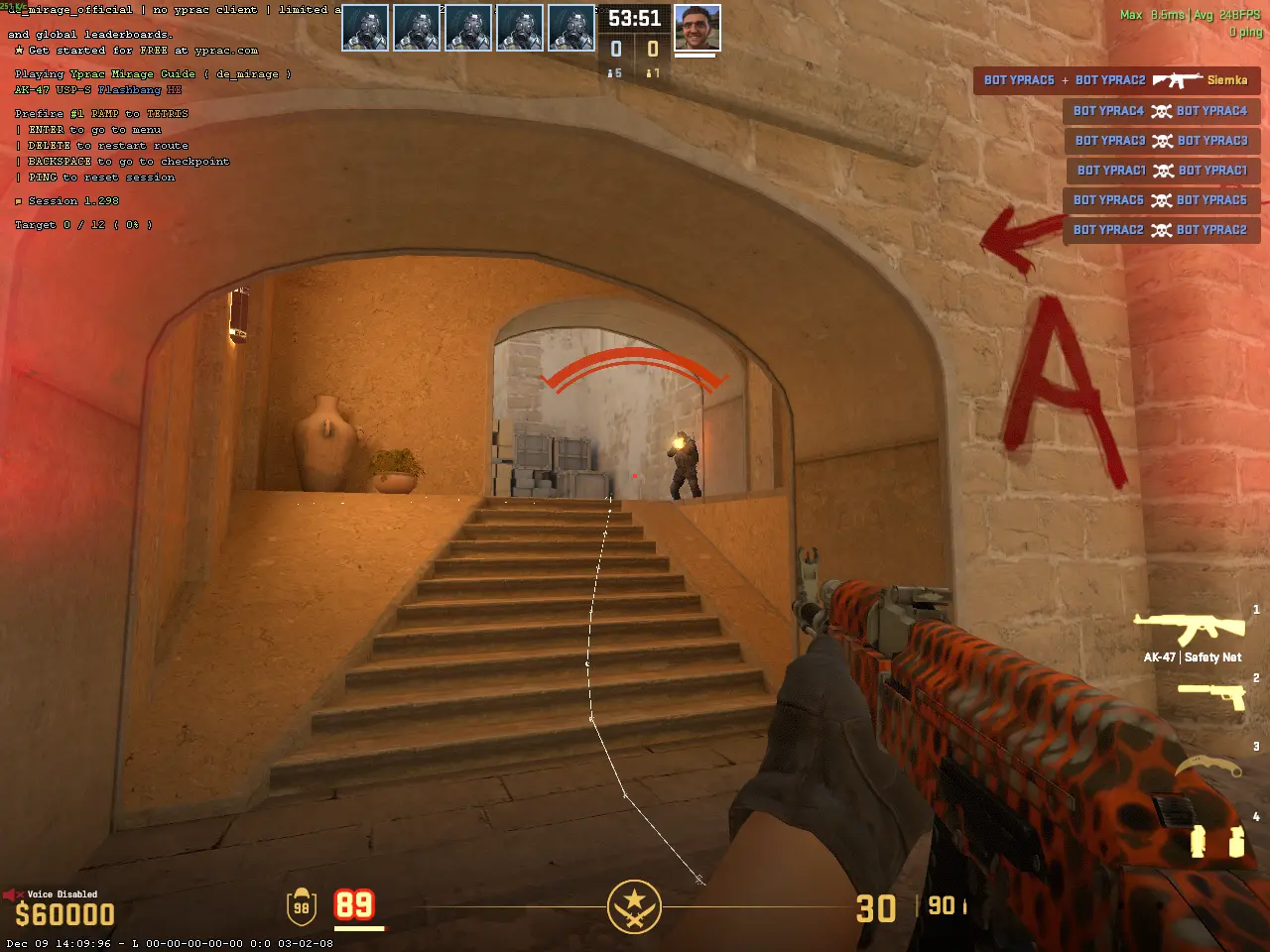 Qui devrait l'utiliser : Les joueurs souhaitant gagner plus de duels sur des cartes spécifiques. Les cartes Yprac sont parmi les meilleures cartes d'échauffement CS2 pour apprendre exactement d'où les ennemis surgissent. Chaque carte majeure (Dust2, Mirage, Inferno) a sa propre version. Apprenez les angles efficacement plutôt que par essais-erreurs en classé.
