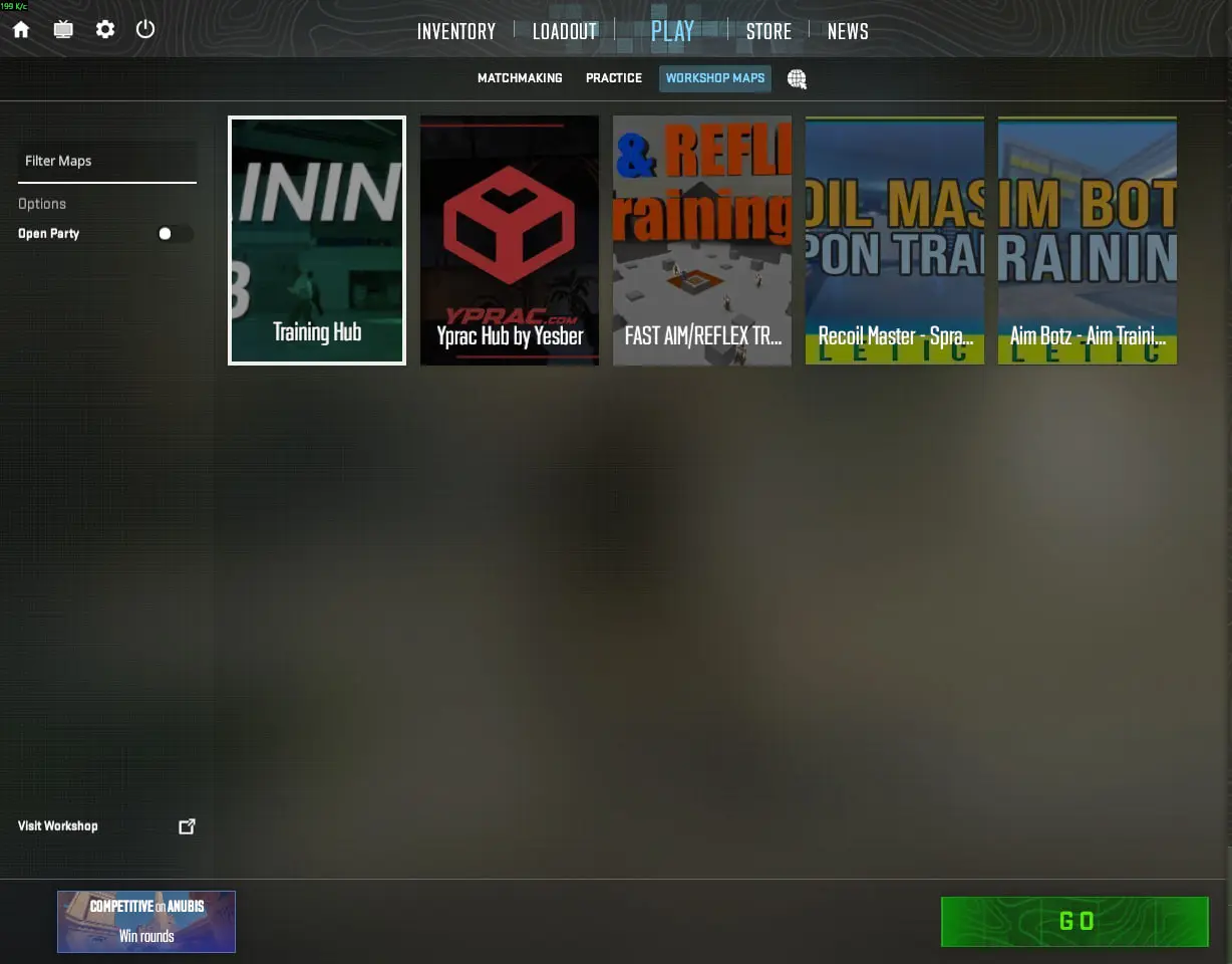 Étape 4 : Lancez CS2 → Jouer → Cartes Workshop