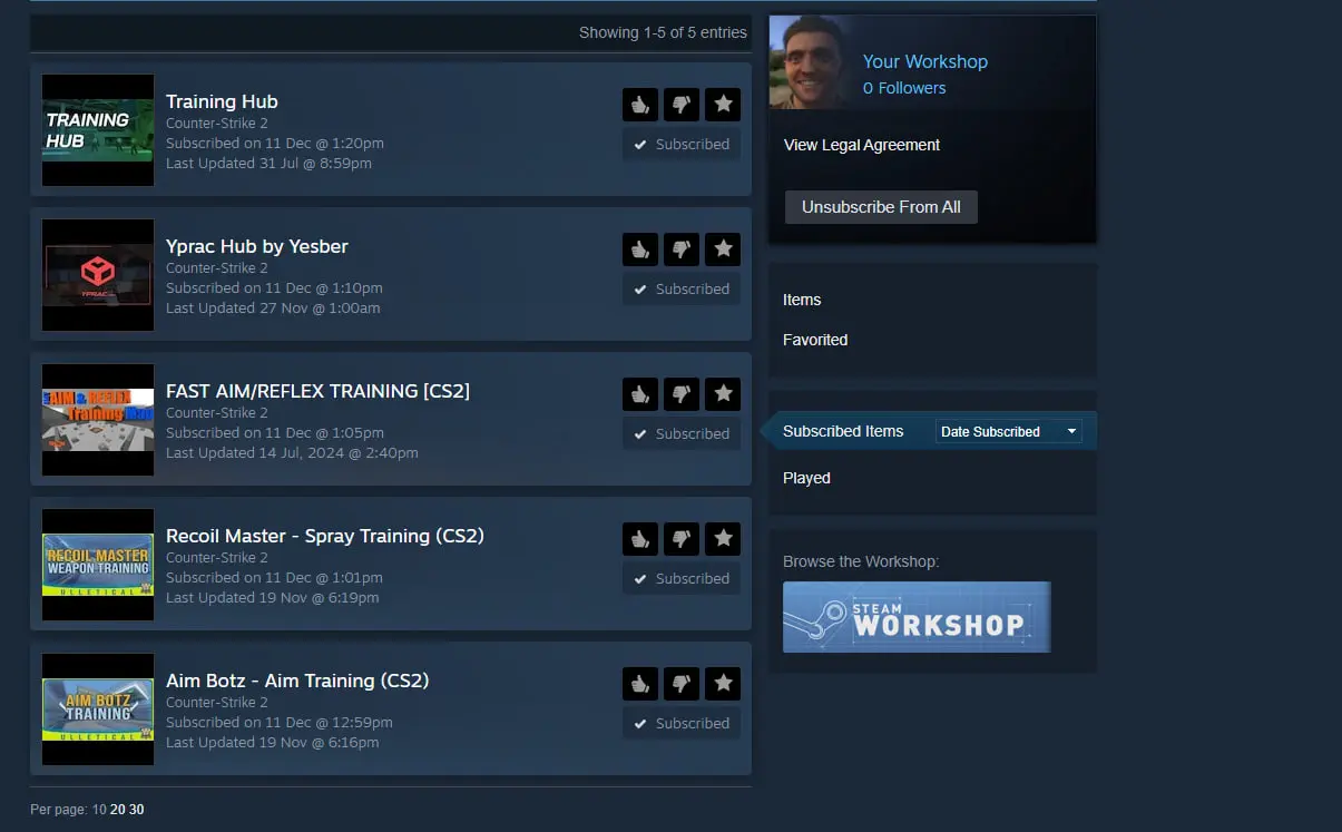 Trouver et installer des cartes d'entraînement CS2 via le workshop est simple grâce à Steam :
