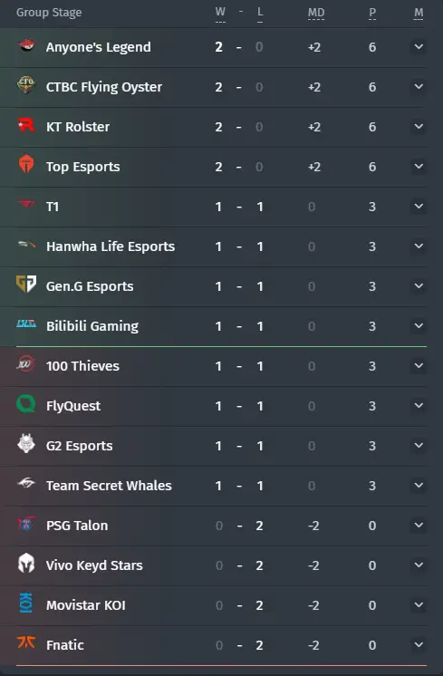 Pada 17 Oktober, akan ada dua pertandingan utama antara tim yang belum mengalami kekalahan. KT Rolster akan menghadapi Top Esports, sedangkan CTBC Flying Oyster akan bertemu dengan Anyone’s Legend. Kedua seri ini akan berlangsung dalam format bo3 dan akan menentukan peserta pertama dengan skor 3–0 yang akan langsung melaju ke babak playoff Worlds 2025.