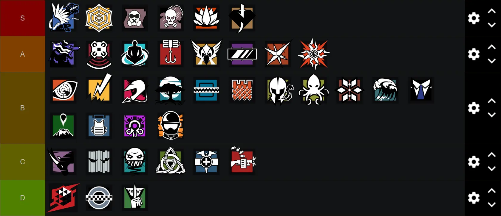우리의 R6 방어자 티어 리스트는 오퍼레이터들을 다섯 개의 뚜렷한 카테고리로 나눕니다: