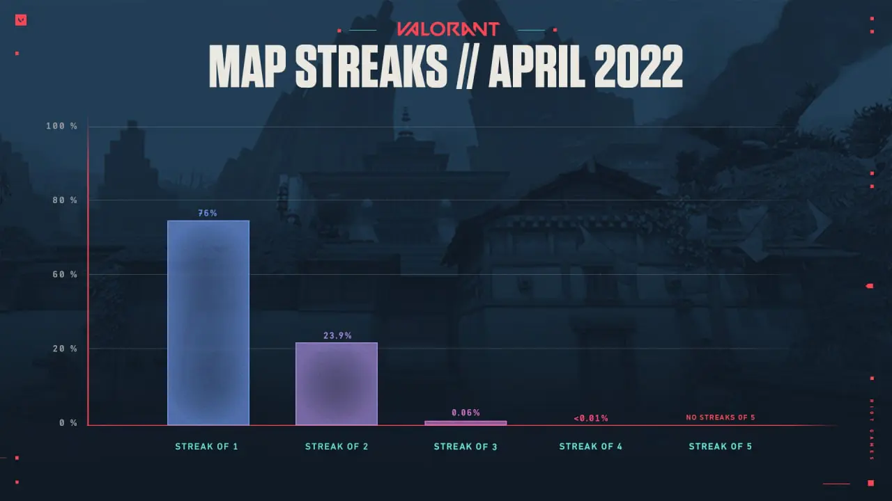 Jednak sytuacja zmieniła się na lepsze w marcu 2022 roku, kiedy to system Determining, który opisaliśmy powyżej, został wprowadzony wraz z łatką 4.04. Po tym, według danych Riot, liczba graczy, którzy otrzymywali tę samą mapę przez kilka meczów z rzędu, znacznie się zmniejszyła.