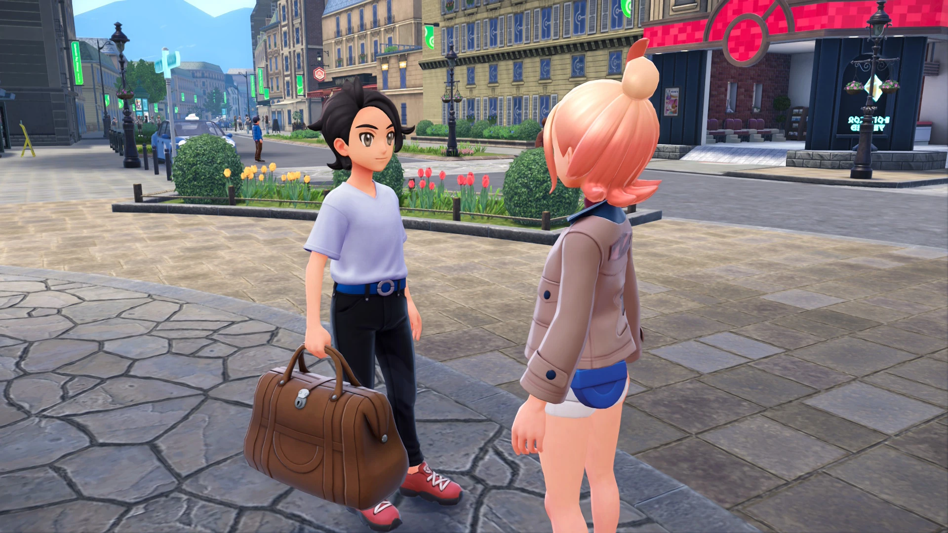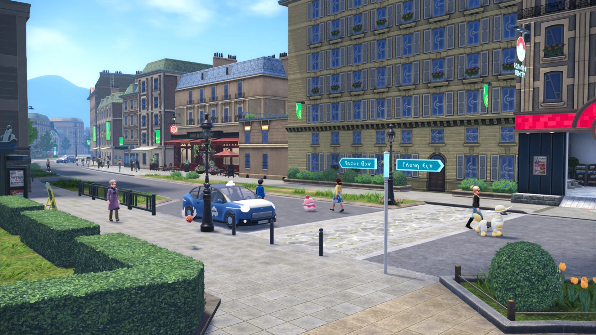 Каждая улица и переулок созданы с вниманием к деталям, и каждое кафе и уголок имеют свою роль, будь то Дикая Зона с покемонами, определенный побочный квест или крыша, скрывающая награду. Круглая форма города помогает облегчить навигацию; каждый сектор структурирован как спицы колеса. Город словно живой организм, и именно плотность делает его пульсирующим жизнью. Покемоны, которые появляются в городских условиях, такие как Trubbish возле мусора, Pidgey, летящий над головой, и Eevee, бегущий по переулку, идеально соответствуют среде обитания. Здесь может быть много случайных вещей, но у всего есть смысл. Ведь это игра, и в этой конкретной игре вы обучаетесь новым техникам передвижения по городу.