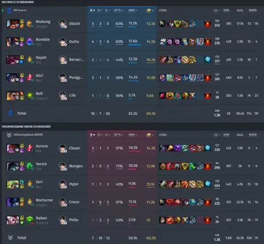 Во второй встрече OKSavingsBank BRION в напряженной борьбе одолели DN Freecs со счетом 2:1. Несмотря на проигрыш на первой карте, BRION смогли собраться и взяли две следующие. MVP матча признан мидлейнер команды BRION — Ли “Clozer” Чу-хён, который сделал много решающих убийств, нанося в среднем 22,47k урона. Подробные цифры по игре можно найти здесь.