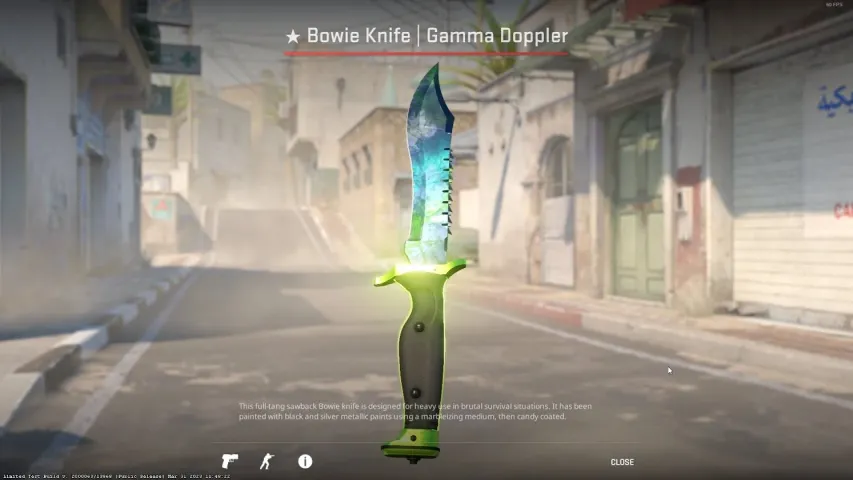 Среди 404 различных скинов ножей, ★ Нож Боуи | Гамма Допплер имеет статус скрытного предмета, что делает его ультра-редким предметом. Вероятность получения этого скина составляет всего 0.26%, что подчеркивает его исключительность.