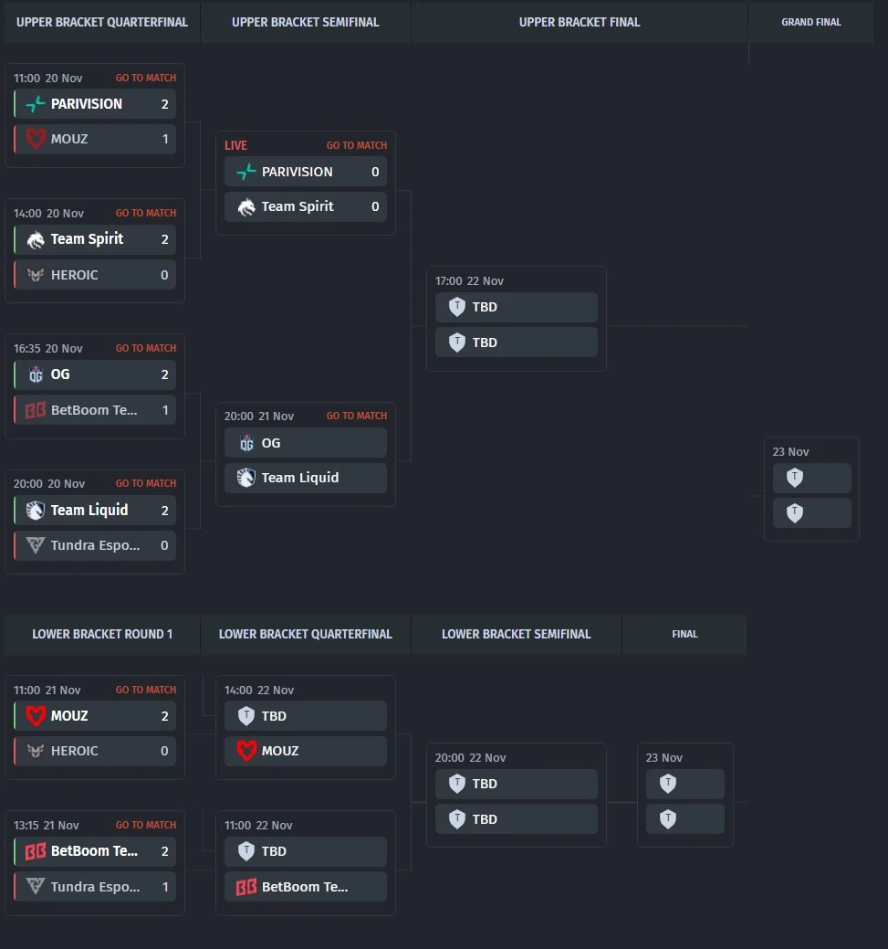 Matagumpay na nalampasan ng MOUZ ang kanilang kalaban, nanalo sa parehong mapa — 29:16 at 35:25. Ipinakita ng koponan ang malakas na early at midgame na laro, halos hindi binigyan ang HEROIC ng pagkakataon para makabawi.