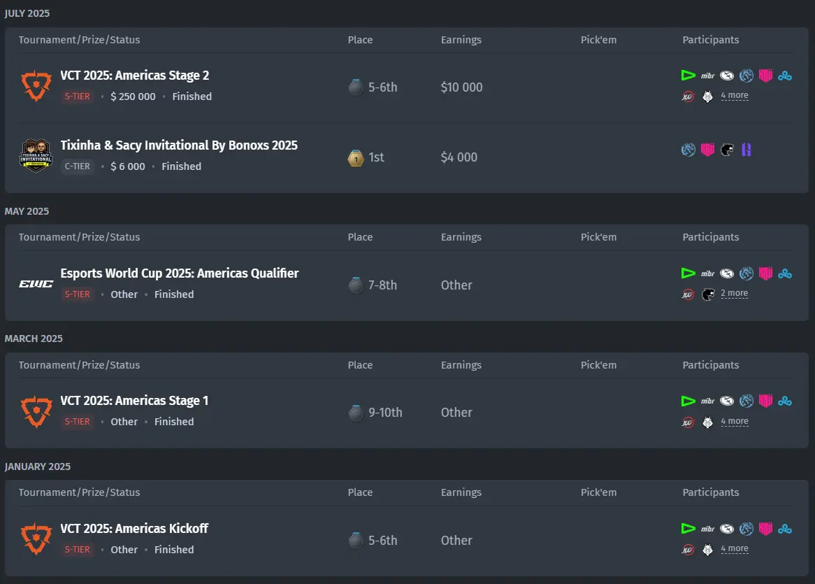 2025 sezonu, Leviatán için en verimli sezonlardan biri değildi. Takım, VCT 2025: Americas Kickoff'ta 5.-6. ve Americas Stage 1'de 9.-10. sırada yer aldı, bu da iki uluslararası Masters etkinliğine katılmalarını engelledi. Sezonun ikinci yarısında, takım yine Americas Stage 2'de ilk 6'da yer aldı ve Dünya Şampiyonası'na katılma hakkı kazanamadı. Bunun ardından sezon Leviatan için sona erdi ve çoğu oyuncu pasif hale geçti ve şimdi resmi olarak kulüpten ayrıldı.